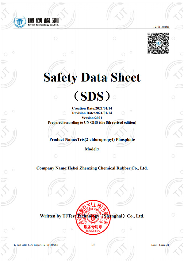 三:純凈的三氯丙基磷酸酯為無(wú)色或淡黃色油狀透明液體,無(wú)味.與一般有機(jī)溶劑相溶,不溶于水和脂肪族烴,且水解穩(wěn)定性好,在堿性溶液中有小量分解.本品無(wú)毒,無(wú)明顯腐蝕性.